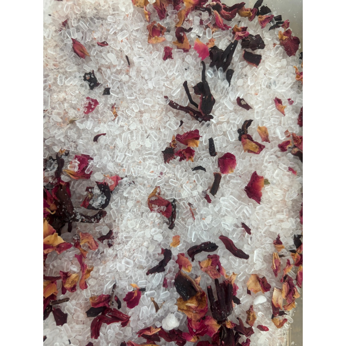 Immerse yourself in a bath that feels like a bouquet of pure serenity with our Handmade Bath Marinade – Rose Geranium & Ylang Ylang, a luxurious floral soak crafted to nourish the skin and calm the spirit. Each batch is lovingly hand-blended using the finest Epsom, Himalayan, and Dead Sea salts, chosen for their rich mineral content and centuries-old reputation for soothing tired muscles, promoting circulation, and drawing out impurities. The result is a deeply restorative bathing ritual that leaves your body refreshed and your skin soft, smooth, and delicately perfumed.